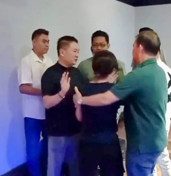 “Jadi di video itu HP saya mau dirampas, lalu tangan saya dipegangi kanan-kiri oleh dua orang– yang satu sebelah kanan oleh laki-laki yang baju hijau, yang satu lagi oleh istrinya yang baju biru rambut pendek,” ungkap Bryan.