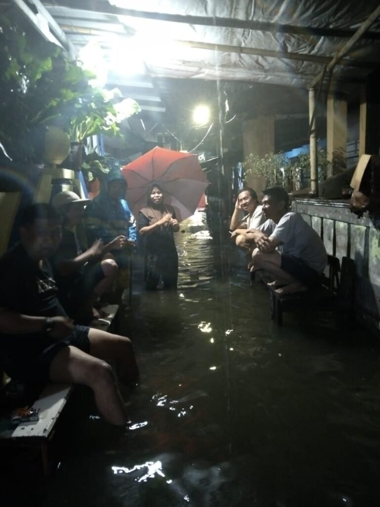 “Banjirnya lumayan tinggi bang, sepaha orang dewasa, makanya banyak warga yang mengungsi cari tempat aman, kebanyakan pada ke mushola.” Ujar Mulyani saat diwawancarai awak media.