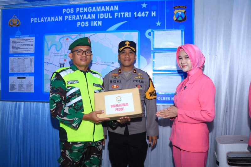 Ngawi – Dalam rangka memberikan semangat dan apresiasi kepada personel yang bertugas selama Ops Ketupat Semeru 2026 di pos-pos pengamanan/pelayanan pada arus mudik dan balik Idul Fitri 1447 H, Kapolres Ngawi AKBP Prayoga Angga Widyatama, S.I.K., M.Si., didampingi Ketua Bhayangkari Cabang Ngawi Ny. Erine Prayoga, memberikan bingkisan Lebaran kepada anggota yang bertugas di pos pengamanan dan pos pelayanan perayaan Idul Fitri 1447 H.