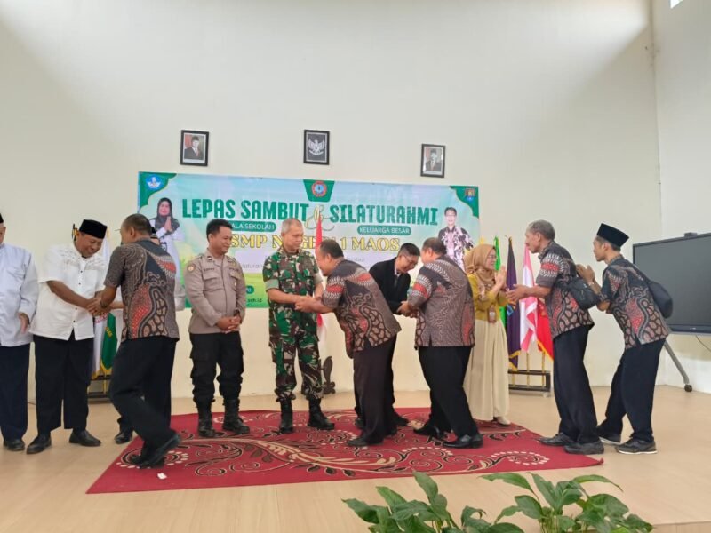 Detikdimensi.com Cilacap – Kapten Inf Jurizal selaku Danramil 07/Maos menghadiri acara lepas sambut kepala sekolah SMP N 1 Maos pada pukul 08.45 wib .kegiatan tersebut dilaksanakan di GOR SMP N 1 Maos yang berada di Jalan Stasiun Maos No.212 Dusun Karangreja Kecamatan Maos Kabupaten Cilacap Jawa tengah.