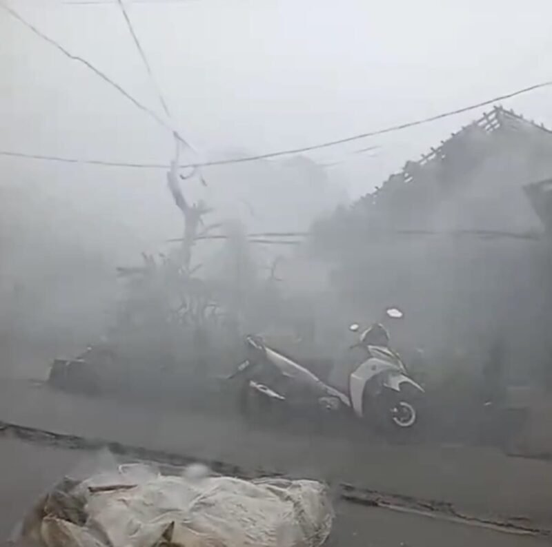 Dalam rekaman video amatir yang beredar, terdengar suara kepanikan warga saat angin kencang melanda.