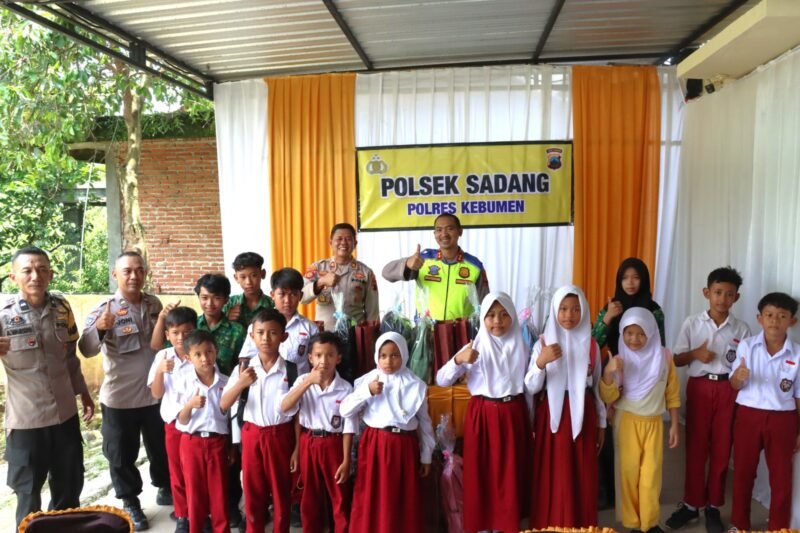 Sebanyak 15 siswa sekolah dasar dari Kecamatan Sadang menerima bantuan berupa tas, sepatu, dan alat tulis. Penyaluran dilakukan secara langsung oleh Kapolres didampingi pejabat utama Polres Kebumen serta Kapolsek Sadang AKP Agus Fantono.