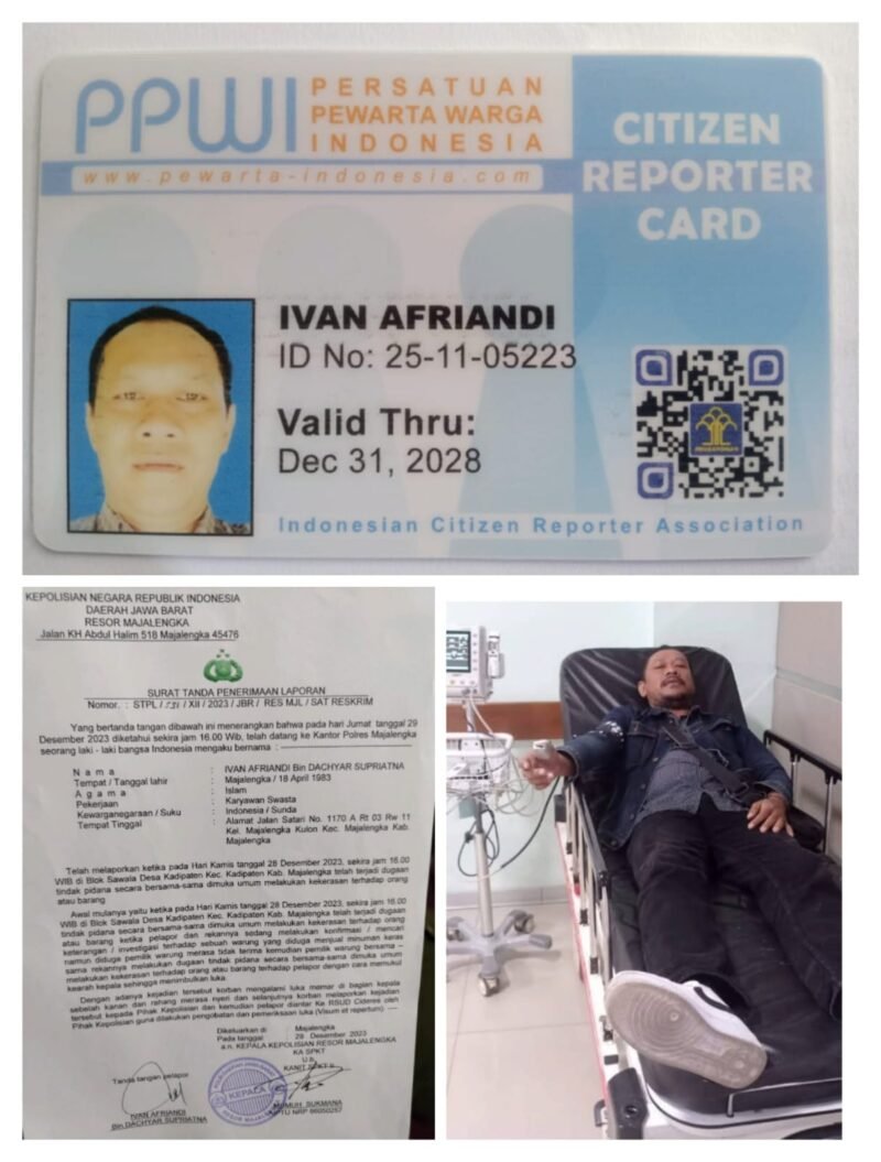 Detikdimensi.com Majalengka – Seorang jurnalis bernama Ivan Afriandi, warga Kabupaten Majalengka yang bertugas di media Jurnal Investigasi, masih belum mendapatkan kepastian hukum atas kasus penganiayaan yang menimpanya. Ironisnya, laporan polisi yang dilayangkan sejak 29 Desember 2023 hingga kini (12 April 2026) belum juga menetapkan tersangka atas enam orang pelaku yang diduga merupakan pedagang minuman keras (miras) beserta rekannya.