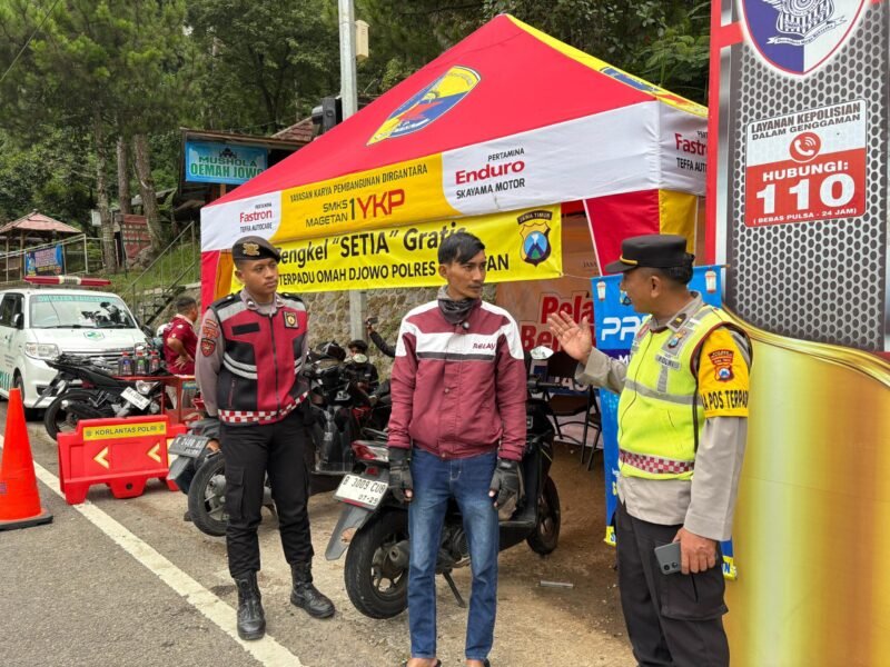 Detikdimensi.com Magetan – Dalam rangka memberikan pelayanan terbaik kepada masyarakat selama pelaksanaan Operasi Ketupat Semeru 2026, Polres Magetan terus berinovasi menghadirkan berbagai fasilitas yang bermanfaat bagi para pemudik dan wisatawan. Salah satu layanan unggulan yang disediakan adalah Bengkel Gratis SETIA yang berada di Pos Terpadu Omah Jowo Sarangan.
