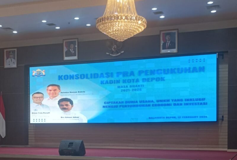 Detikdimensi.com, Depok – Acara pelantikan dewan penasihat, dewan kehormatan, dewan pertimbangan dan dewan pengurus Kadin Kota Depok yang tertera dalam undangan yang redaksi terima, pada kamis, 12 Febuari 2026 di gedung Baleka 2 Depok, ternyata berubah menjadi pra konsolidasi Kadin Kota Depok.