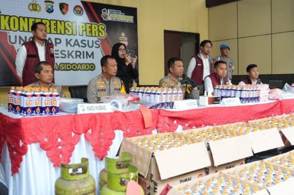 Kapolresta Sidoarjo, Christian Tobing, menjelaskan bahwa pelaku memindahkan isi LPG subsidi ke tabung kecil menggunakan regulator, selang, alat pengisi ulang, timbangan digital, hingga alat press untuk menutup kemasan.