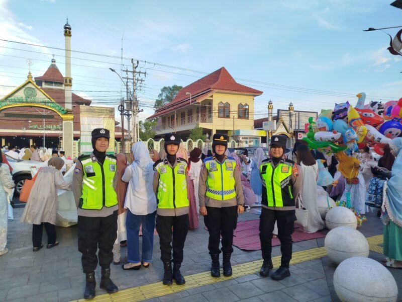 Pengamanan dilakukan dengan menempatkan personel di sejumlah titik untuk memastikan kelancaran arus jamaah serta menjaga situasi tetap aman dan tertib selama pelaksanaan ibadah.