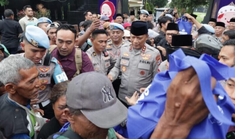 Detikdimensi.com Surabaya – Kapolda Jawa Timur Irjen Pol Drs Nanang Avianto,M.Si bersama Wakapolda Jatim, Brigjen Pol Pasma Royce membagikan ratusan paket takjil kepada para pengendara yang melintas di depan Mapolda Jatim, Kamis (5/3/2026).